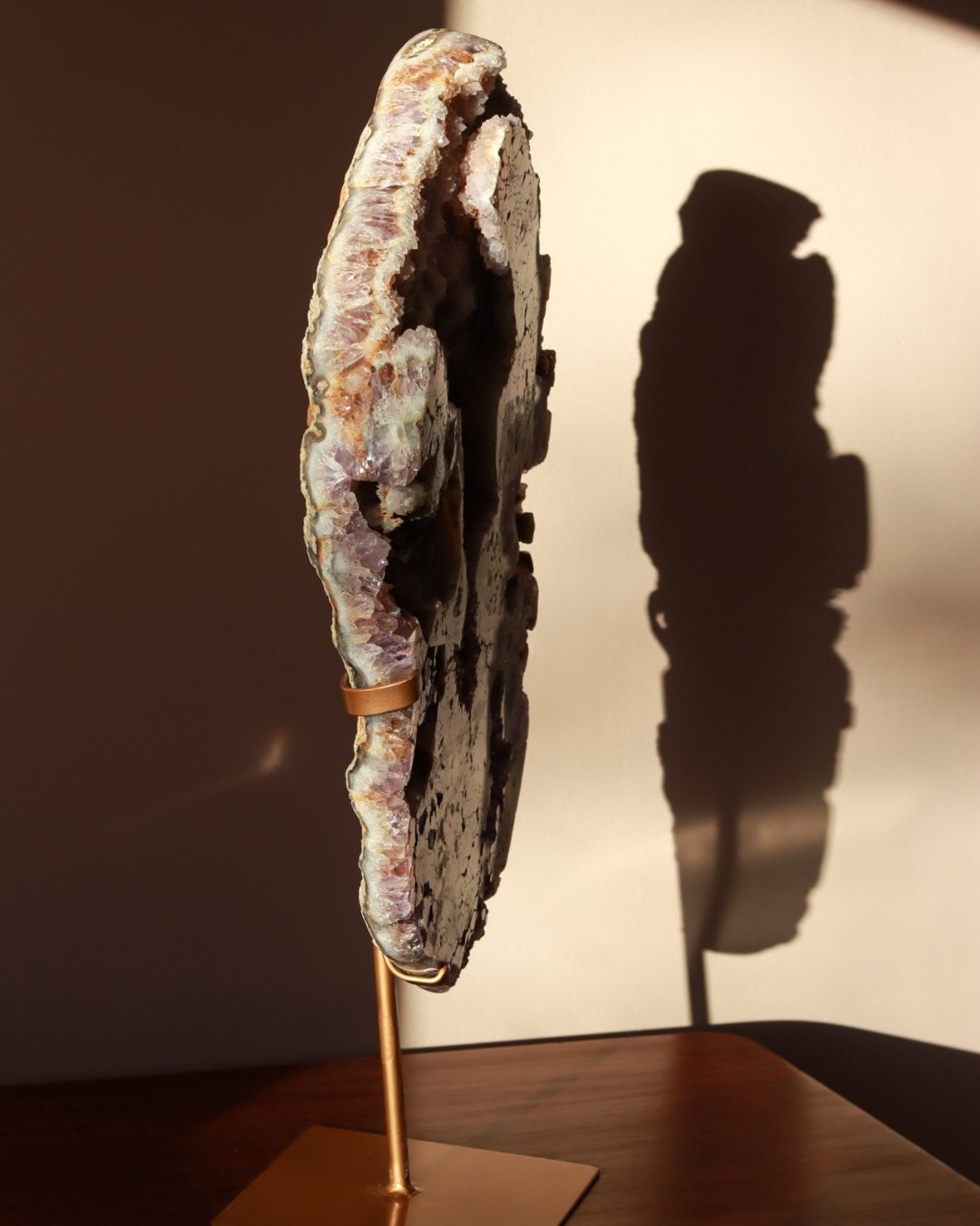 Een zeer unieke amethist slab op standaard van A+ kwaliteit