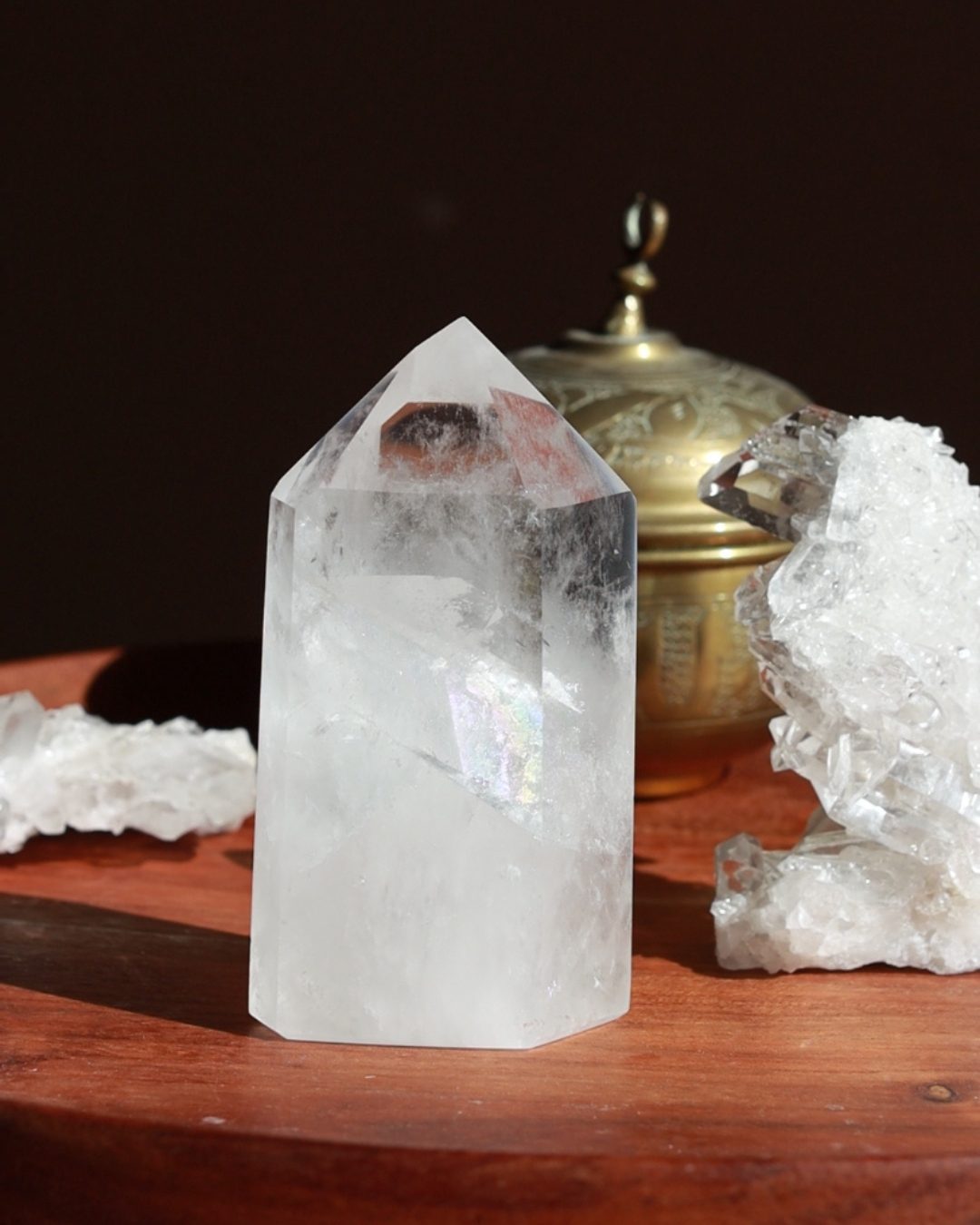 Bergkristal is een van de meest populaire en heldere edelstenen en wordt de ‘versterker’ onder de kristallen genoemd. Bergkristal vormt samen met amethist en rozenkwarts de bekende gouden driehoek. Bergkristal ontstaat diep in de aarde uit pure siliciumdioxide en groeit in prachtige zeshoekige punten. Ze wordt al eeuwenlang gewaardeerd vanwege haar glasheldere uitstraling. Energetisch gezien staat bergkristal bekend om haar heldere, zuivere energie. Ze helpt om blokkades op te lossen, geeft mentale helderheid en brengt balans op spiritueel niveau.