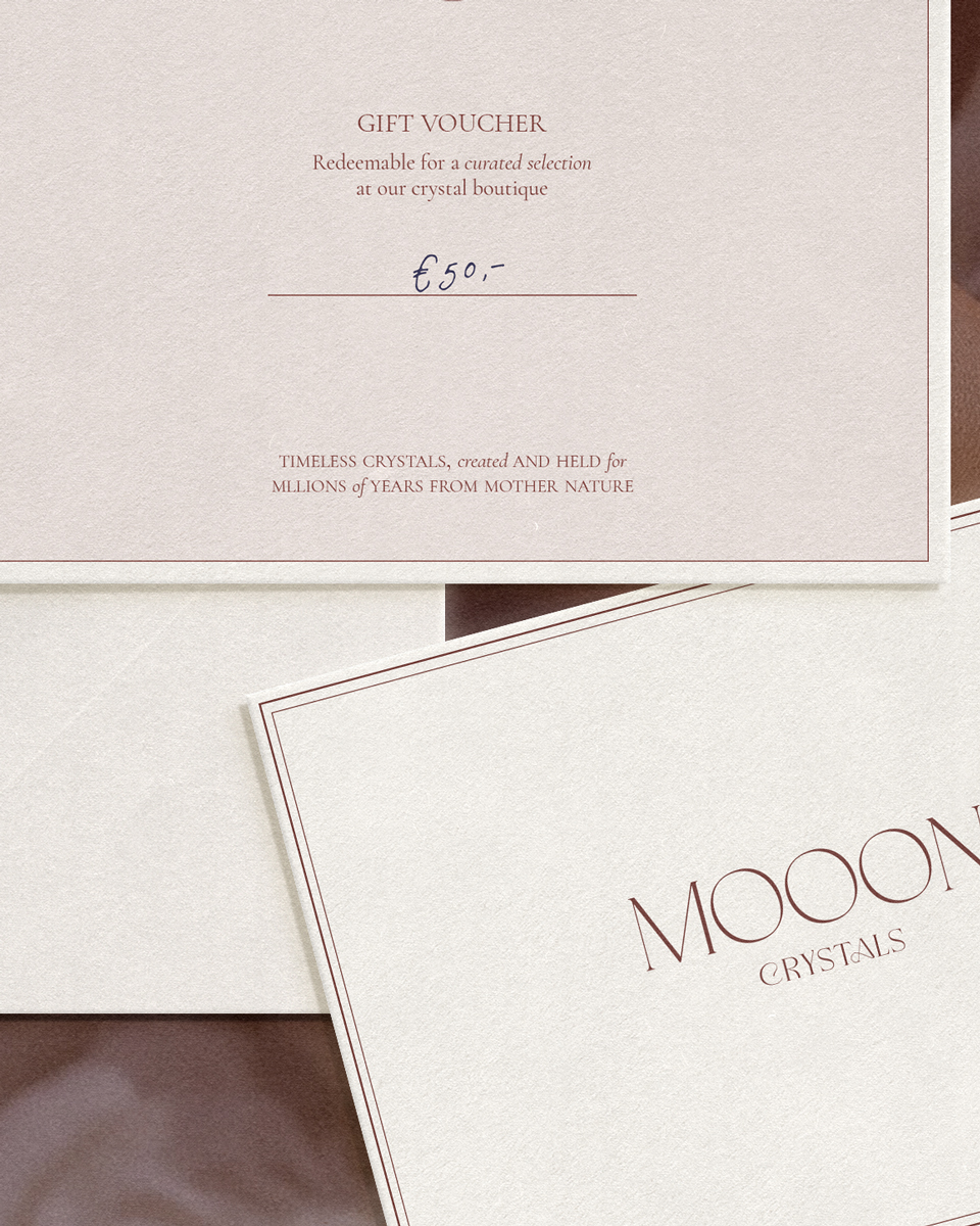 Wil je een dierbare verrassen met een origineel cadeau? Kies voor een cadeaubon bij Mooon Crystals. Verkrijgbaar in bedragen van 10 tot 200 euro.
