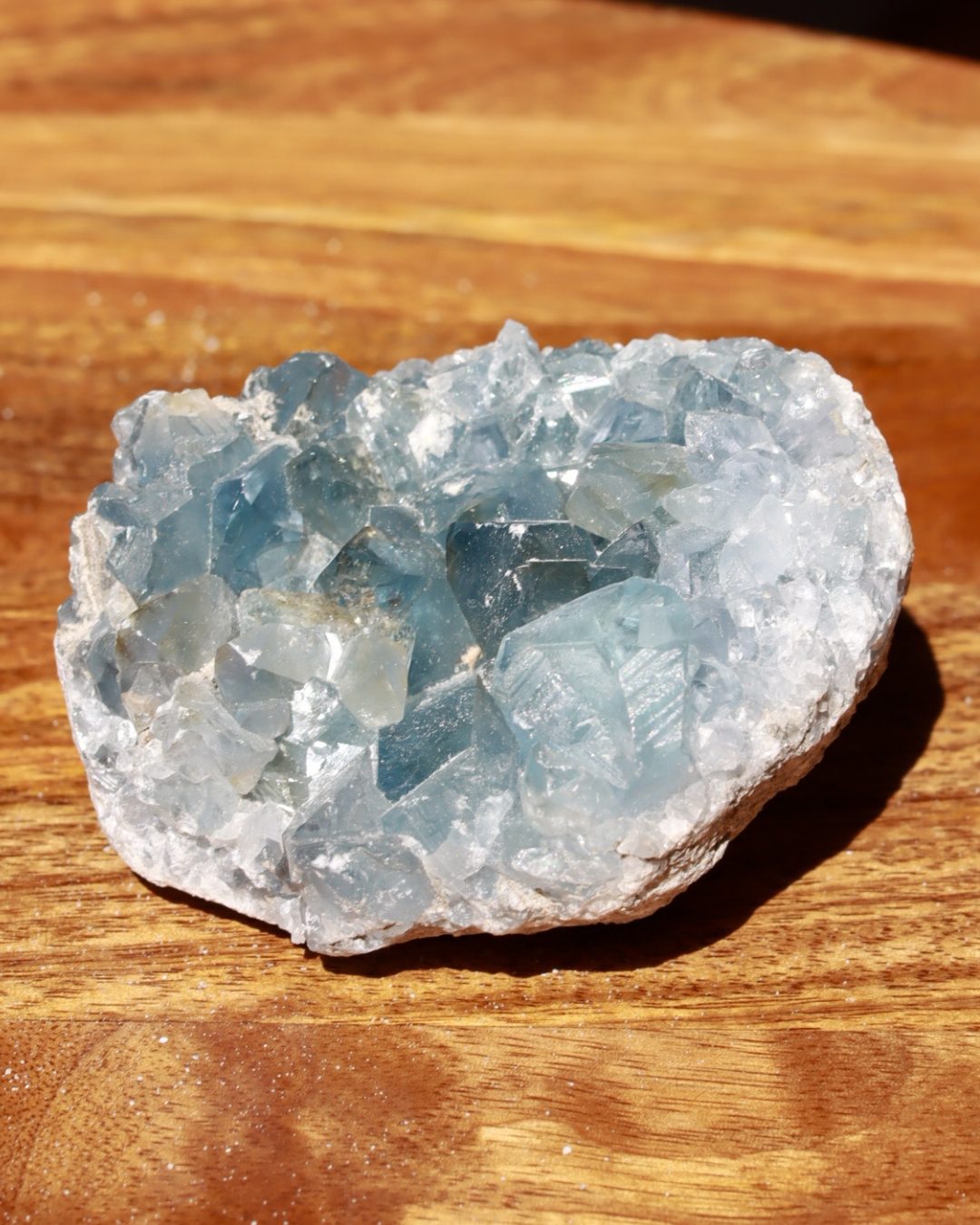 Celestien (ook wel celestiet genoemd) is een kristal met prachtig helderblauwe tinten. Celestien ontstaat voornamelijk in geodes en heeft een broze, kristallijne structuur met een glasachtige glans. Energetisch gezien staat dit kristal bekend als een steen die helpt om contact te maken met hogere energieën, diepe innerlijke rust te ervaren en de communicatie met jezelf en anderen te verzachten. Vanwege de ‘hemelse’ uitstraling wordt ze daarom ook wel de ‘Engelensteen’ genoemd.