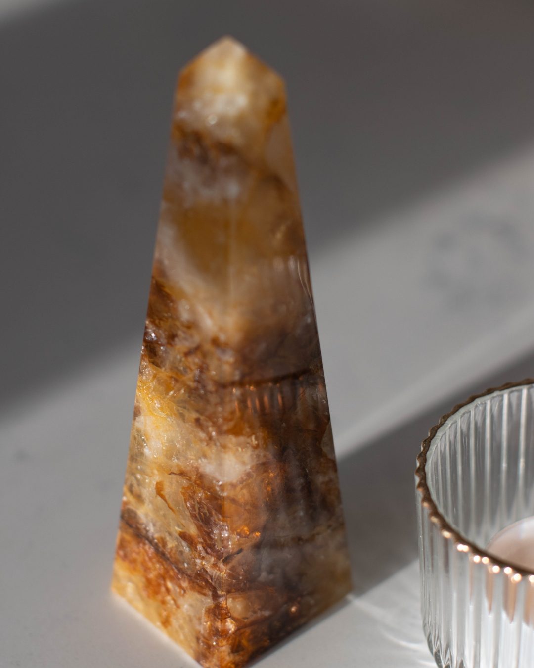 Deze golden healer obelisk heeft een prachtige gouden uitstraling. De diepe kleuren in combinatie met de helderheid van dit edelsteen is ontzettend mooi om te zien.