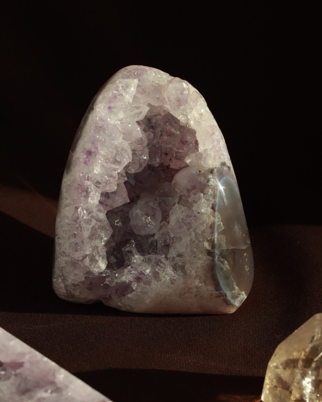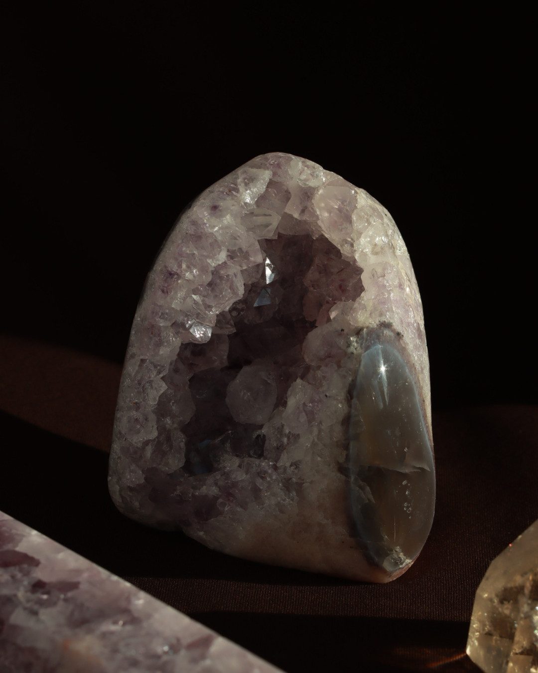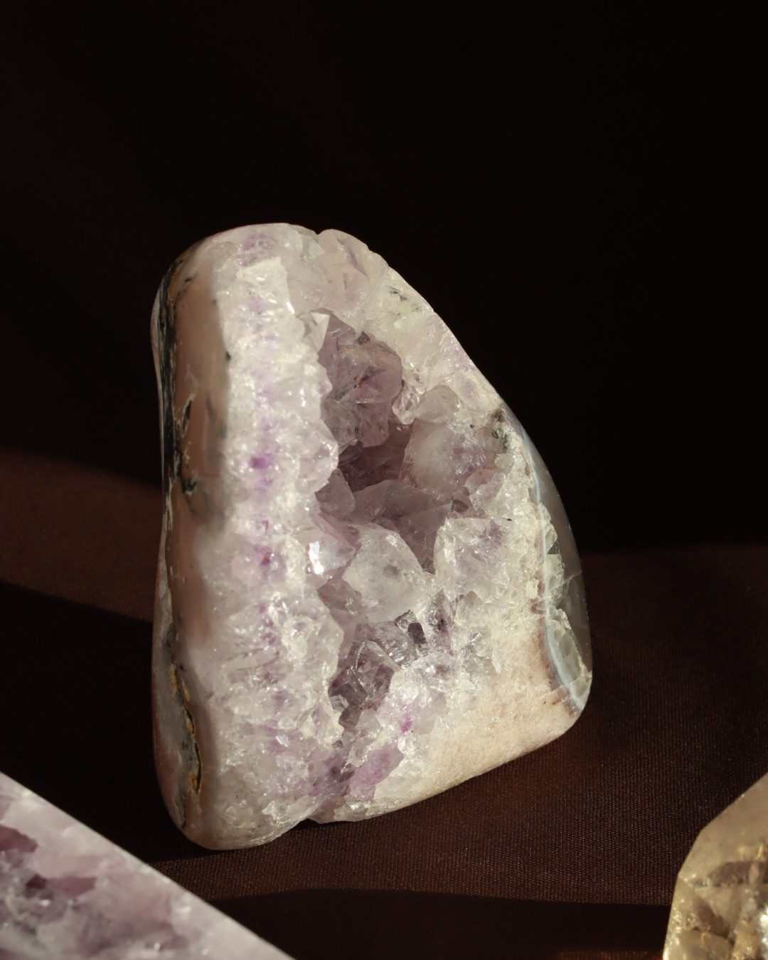 Een uniek stuk dat niet alleen je interieur verfraait, maar ook een krachtige spirituele metgezel is. Met zijn rijke paarse tinten en organische vormen, is deze edelsteen een waar kunstwerk van de natuur.