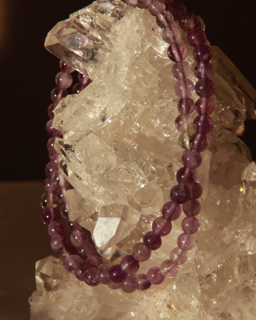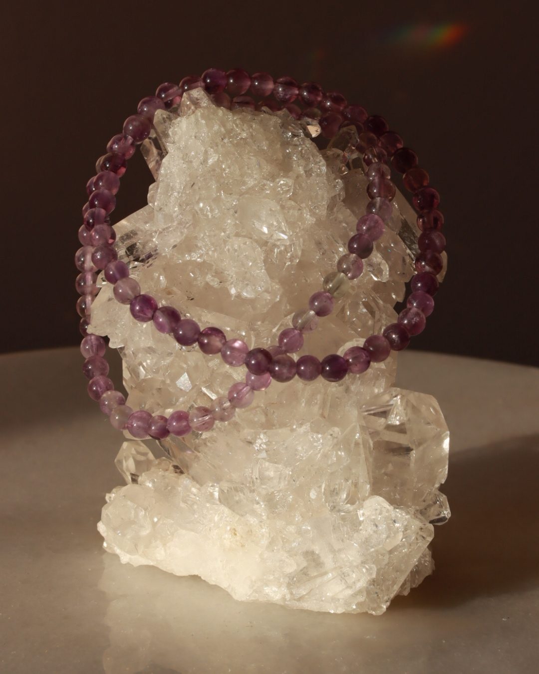 Amethist is een van de meest geliefde edelstenen en staat bekend om haar diepe paarse kleur en kalmerende werking. Amethist vormt met bergkristal en rozenkwarts de bekende gouden driehoek. Amethist ontstaat in vulkanisch gesteente en dankt haar paarse kleur aan sporen van ijzer en natuurlijke straling. Ze wordt al eeuwenlang gebruikt voor rust, meditatie en bescherming. Energetisch gezien staat amethist bekend om haar kalmerende, zuiverende en spiritueel beschermende energie.