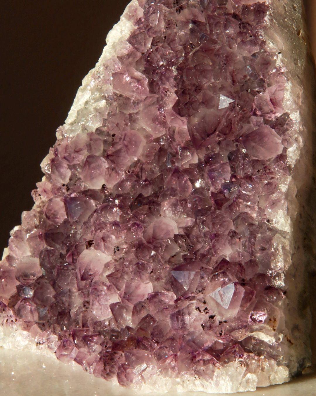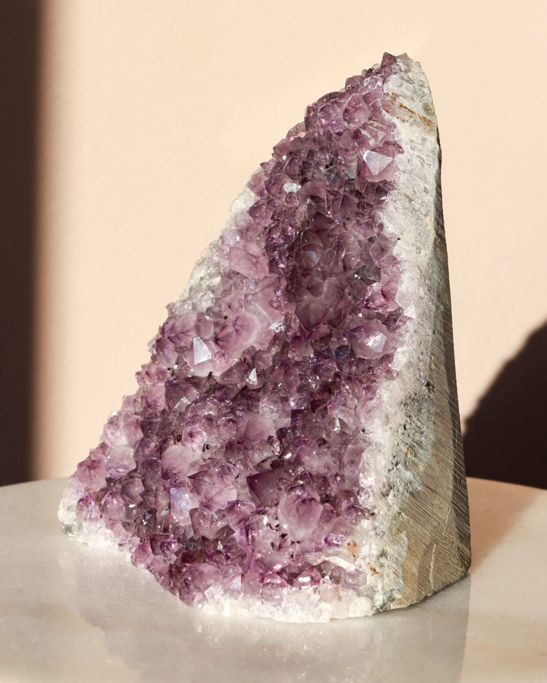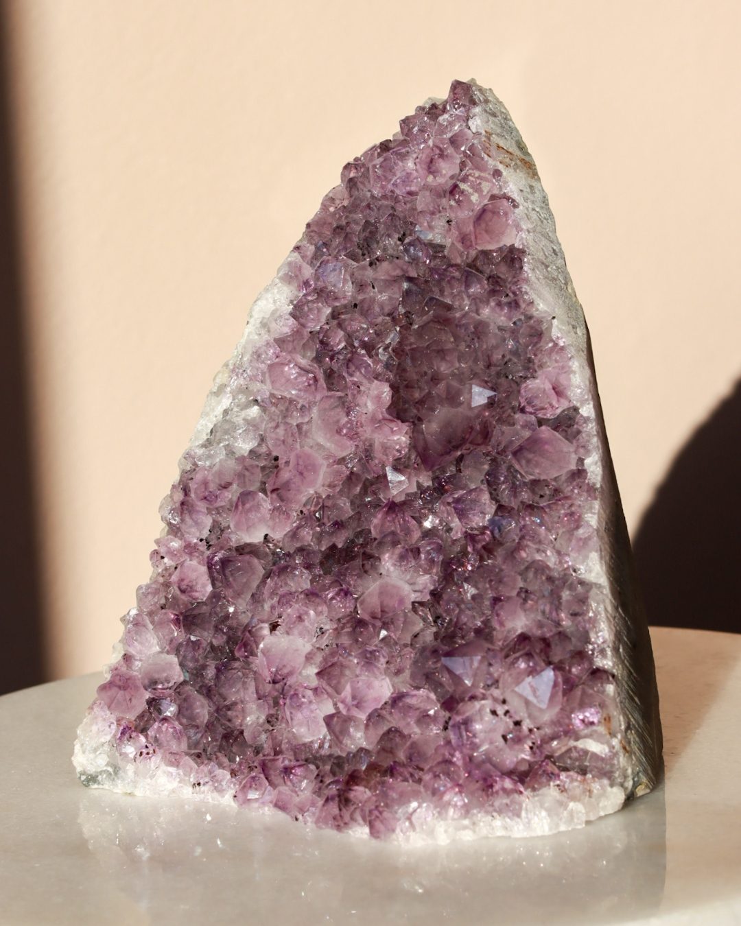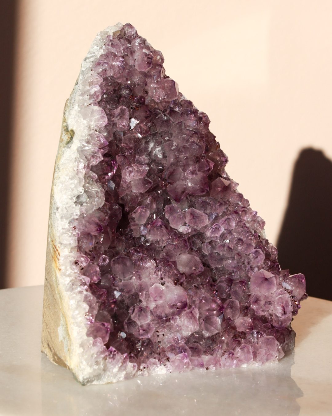 Een zeer unieke amethist cluster op standaard van A+ kwaliteit met witte calciet.