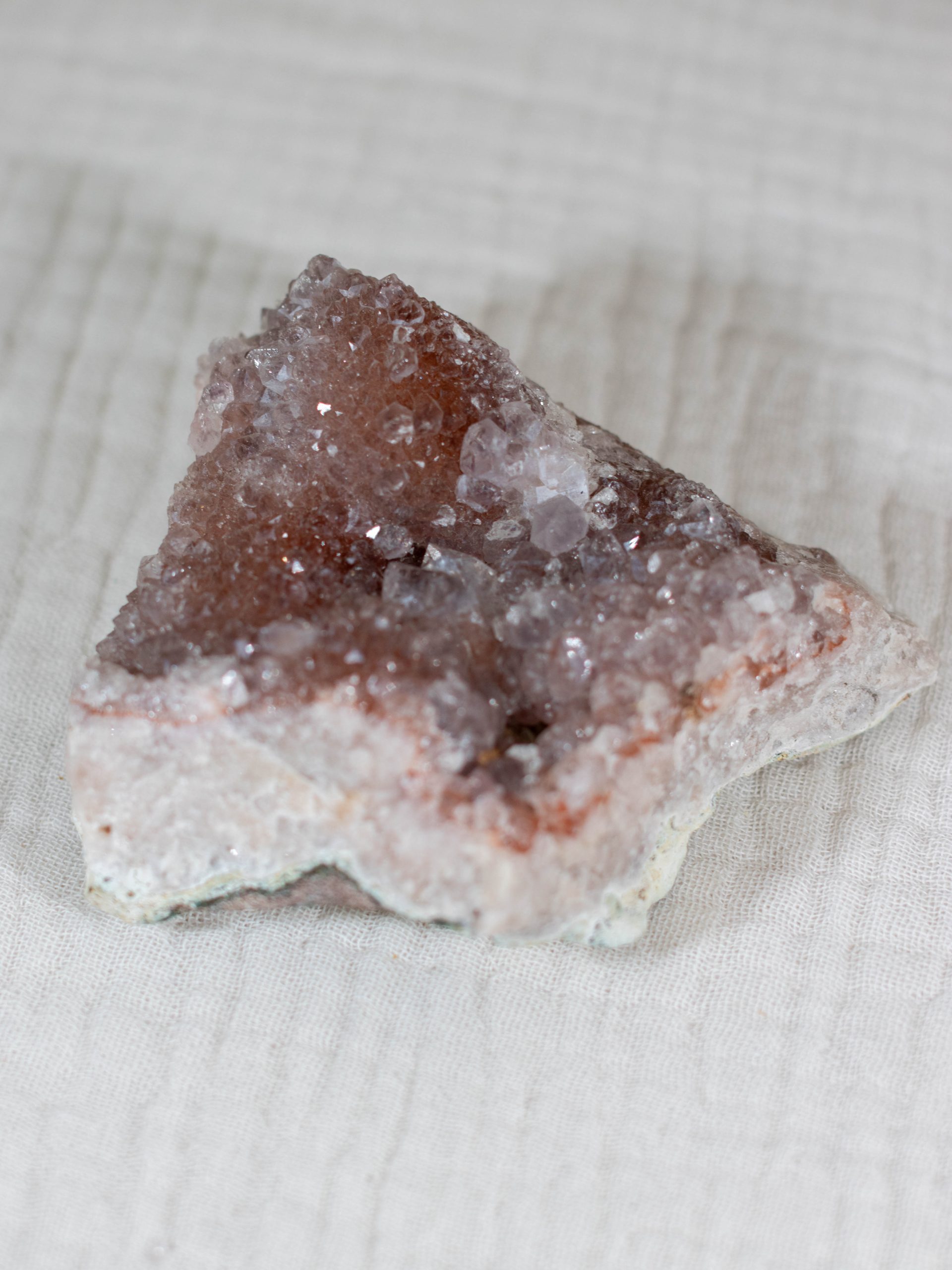 Roze amethist is een zeldzame variant van amethist. Met haar zachte, poederroze tinten is het een van de meest geliefde edelstenen. De roze amethist is ontstaan in vulkanisch gesteente en dankt haar unieke kleur aan sporen van ijzer en andere mineralen. Roze amethist staat bekend om haar kalmerende werking en helpt bij het vinden van innerlijke rust, emotionele balans en zelfliefde.