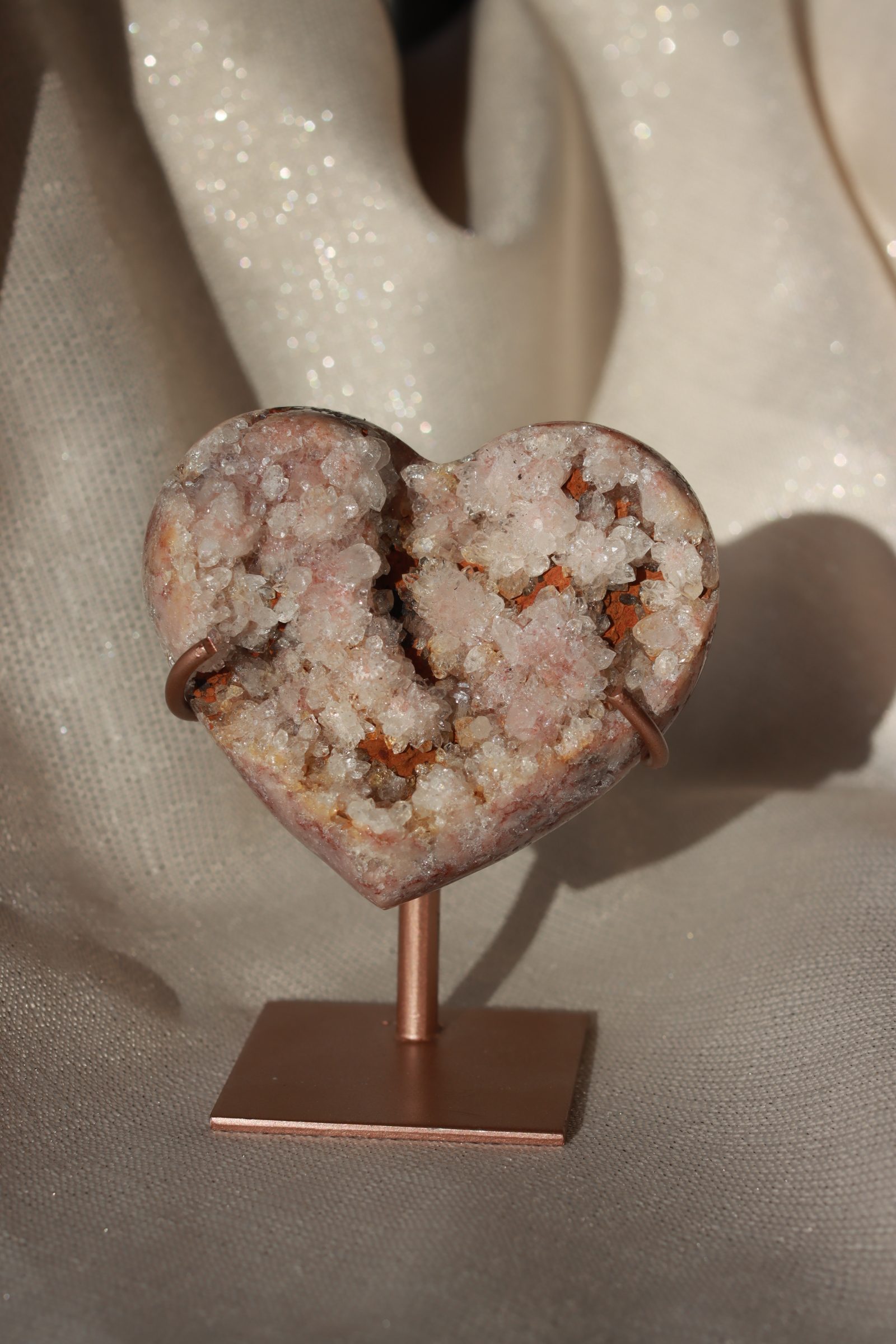 Deze prachtige roze amethist geode bevat poederroze amethistkristallen met dieprode details. De unieke kleuren en glinsterende afwerking van de binnenkant van deze geode maken het een uniek stuk. Een mooie aanvulling voor elke edelstenen collectie.