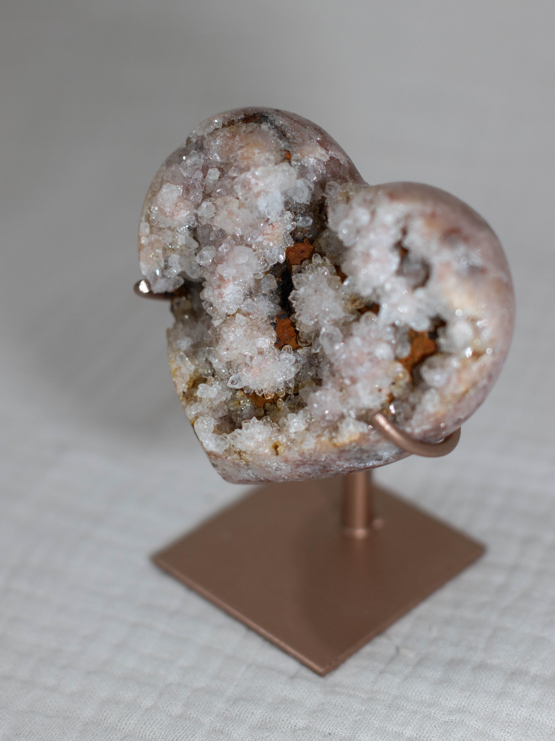 Roze amethist is een zeldzame variant van amethist. Met haar zachte, poederroze tinten is het een van de meest geliefde edelstenen. De roze amethist is ontstaan in vulkanisch gesteente en dankt haar unieke kleur aan sporen van ijzer en andere mineralen. Roze amethist staat bekend om haar kalmerende werking en helpt bij het vinden van innerlijke rust, emotionele balans en zelfliefde.