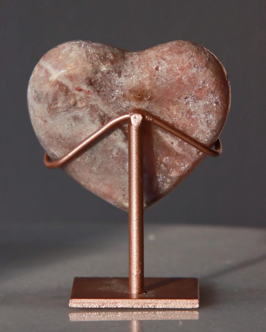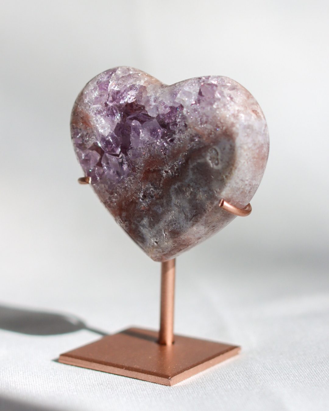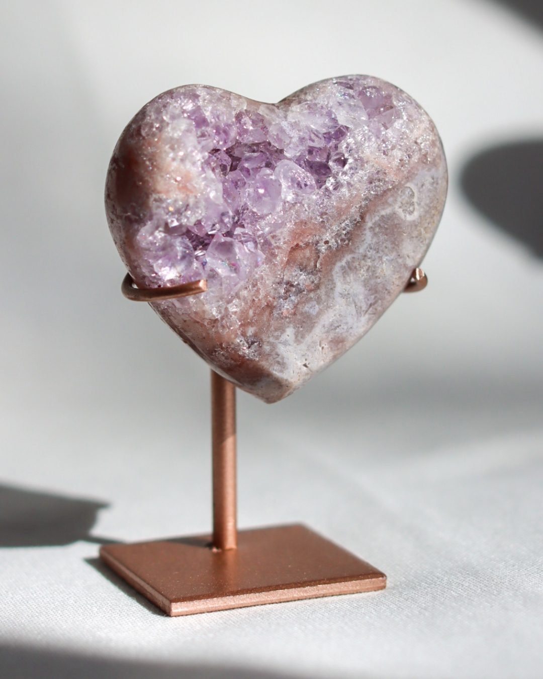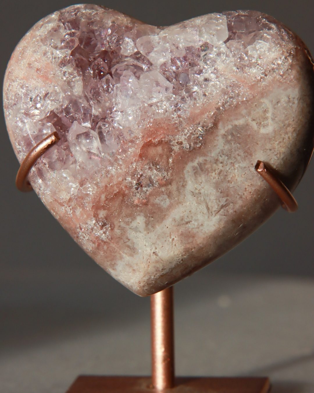 Dit roze amethist hart edelsteen heeft een prachtige mix van roze kleuren. De hartvorm en natuurlijke kristalpatronen maken het zowel een prachtig pronkstuk als een prachtig cadeau.