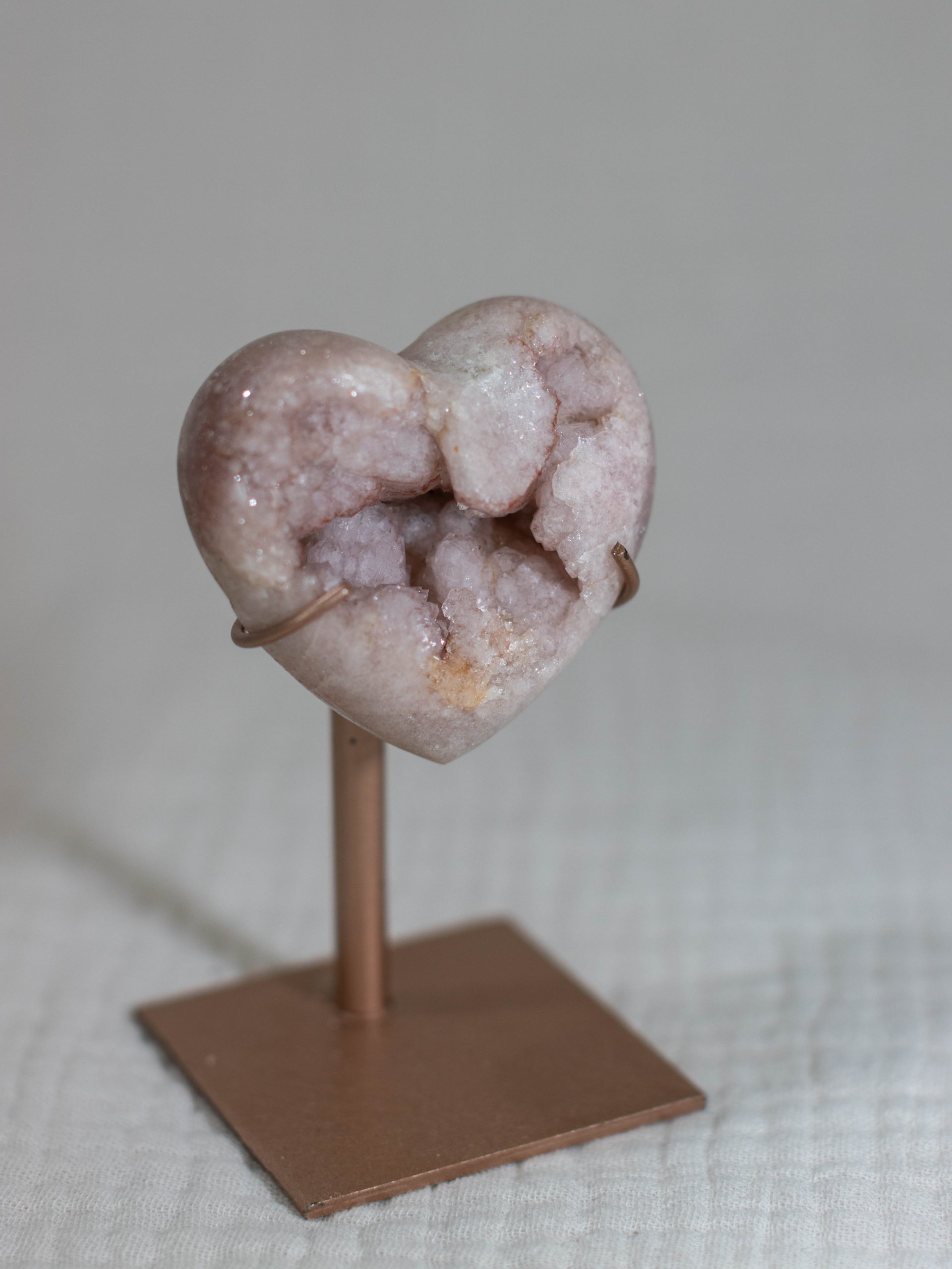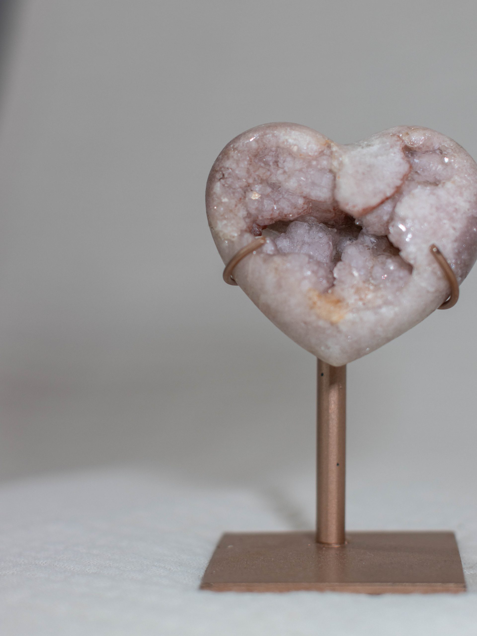 Dit roze amethist hart heeft prachtige roze tinten met diepere paarse tinten. De glinsterende geode aan de binnenkant zorgt voor een vleugje sprankeling. Dit maakt het een prachtig en uniek stuk.