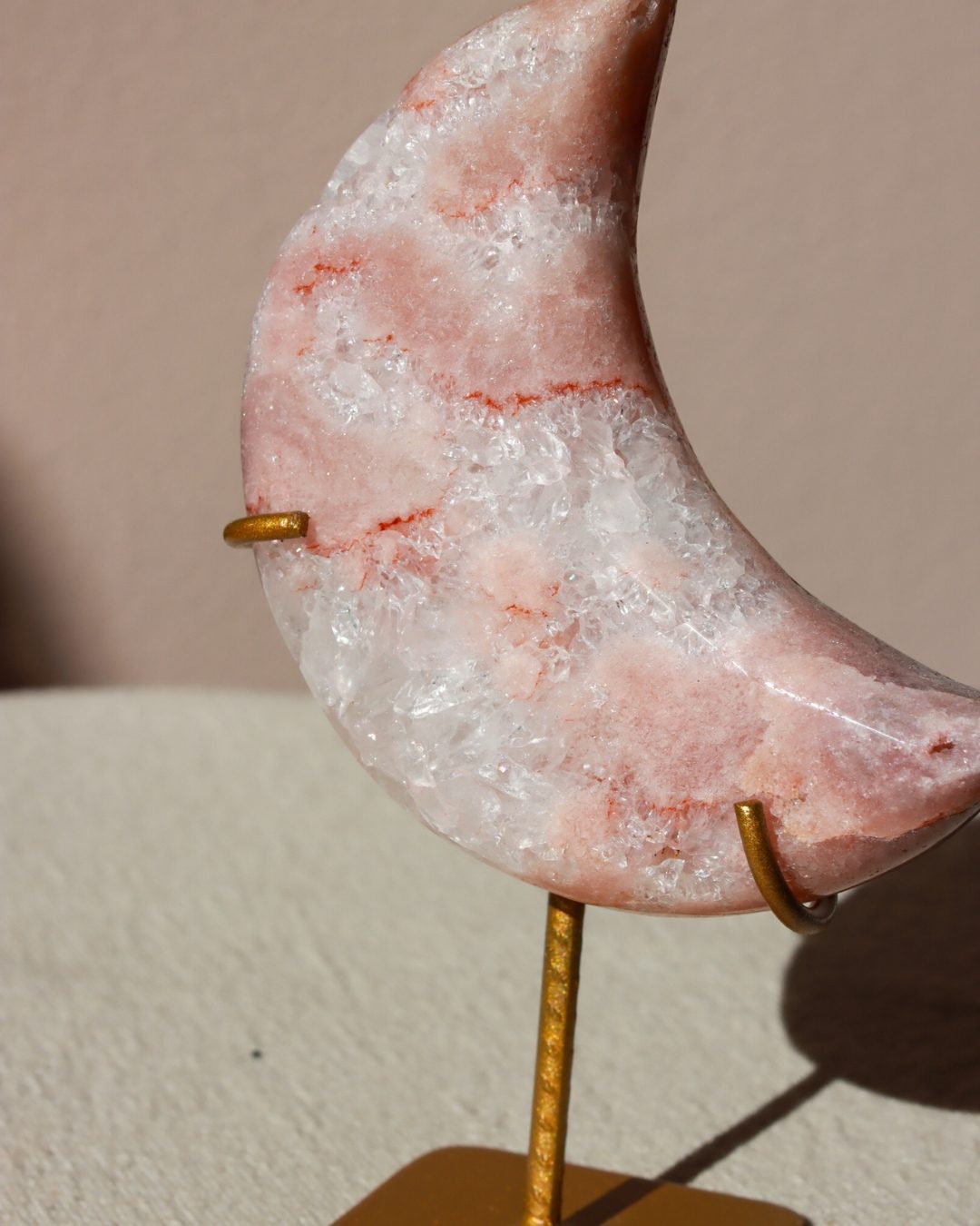 Roze amethist is een zeldzame variant van amethist. Met haar zachte, poederroze tinten is het een van de meest geliefde edelstenen. De roze amethist is ontstaan in vulkanisch gesteente en dankt haar unieke kleur aan sporen van ijzer en andere mineralen. Roze amethist staat bekend om haar kalmerende werking en helpt bij het vinden van innerlijke rust, emotionele balans en zelfliefde.
