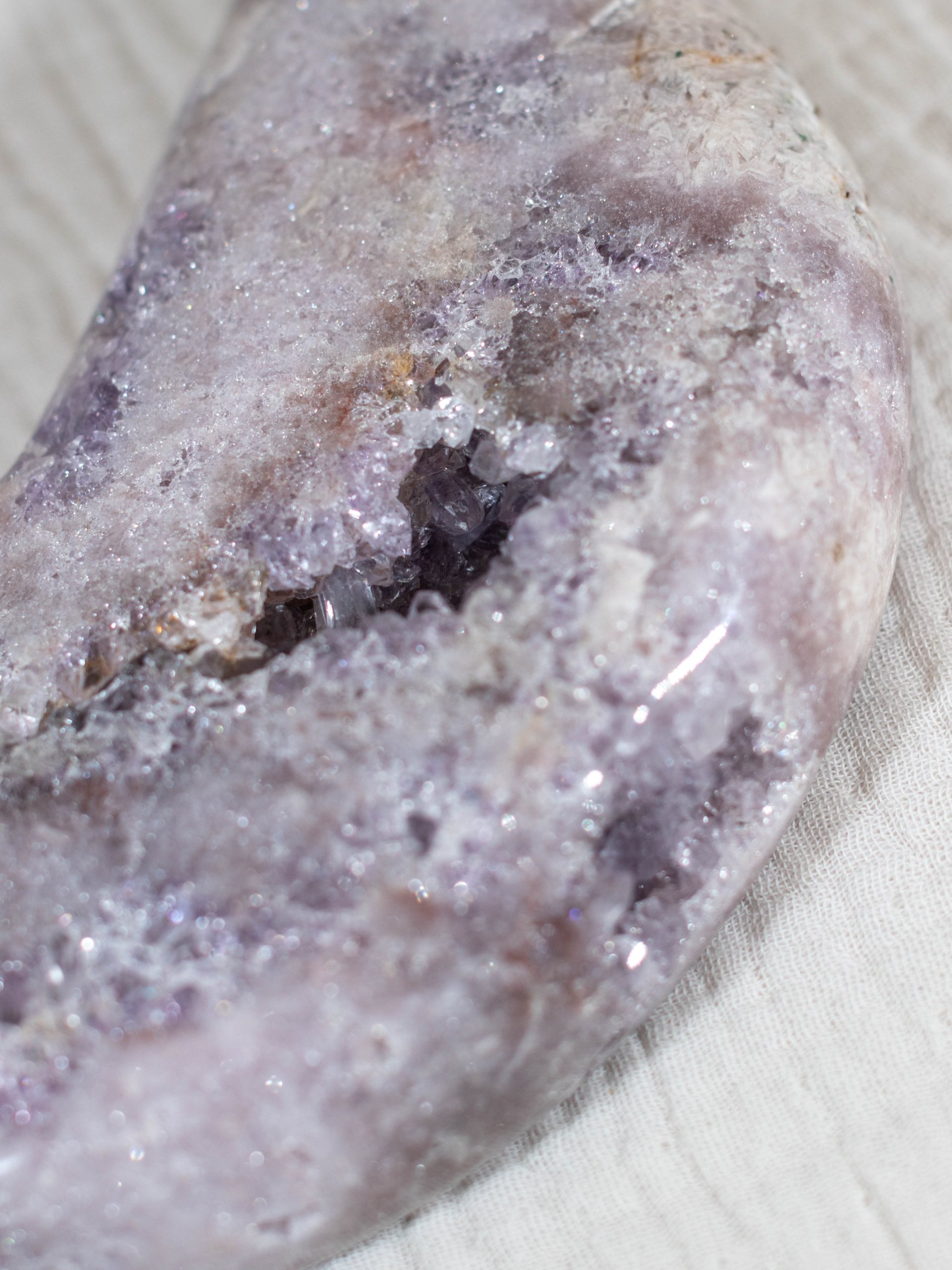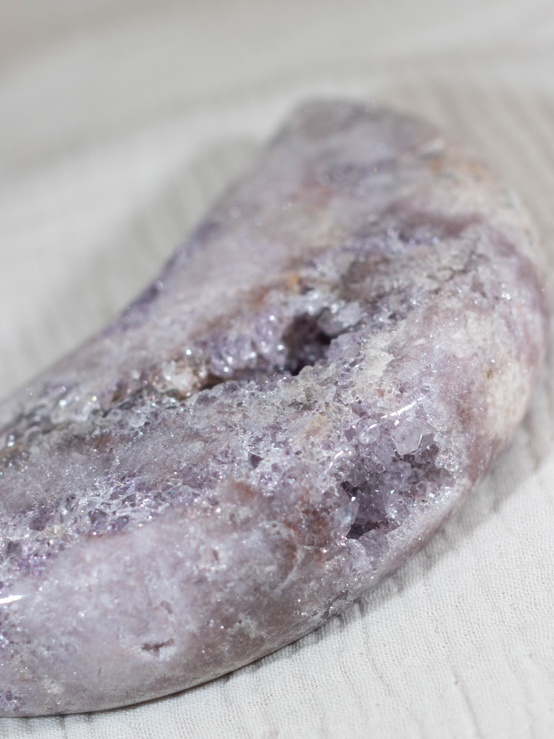 Roze amethist is een zeldzame variant van amethist. Met haar zachte, poederroze tinten is het een van de meest geliefde edelstenen. De roze amethist is ontstaan in vulkanisch gesteente en dankt haar unieke kleur aan sporen van ijzer en andere mineralen. Roze amethist staat bekend om haar kalmerende werking en helpt bij het vinden van innerlijke rust, emotionele balans en zelfliefde.