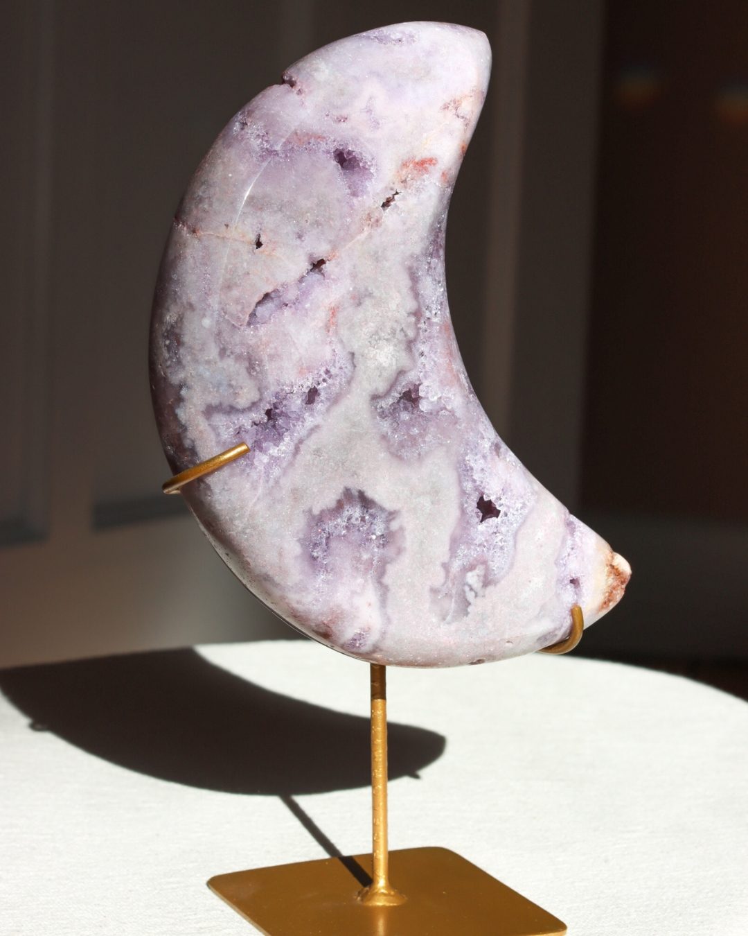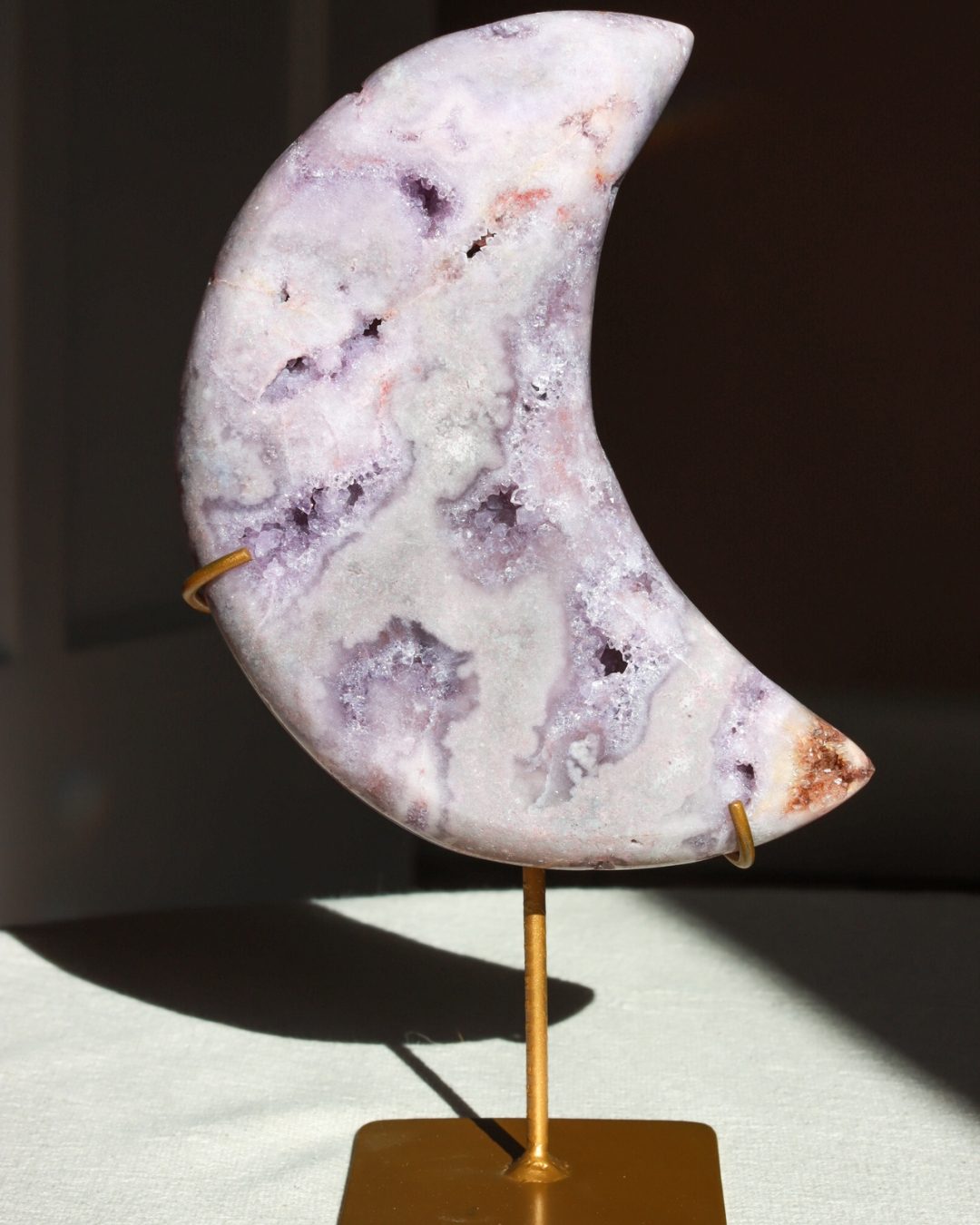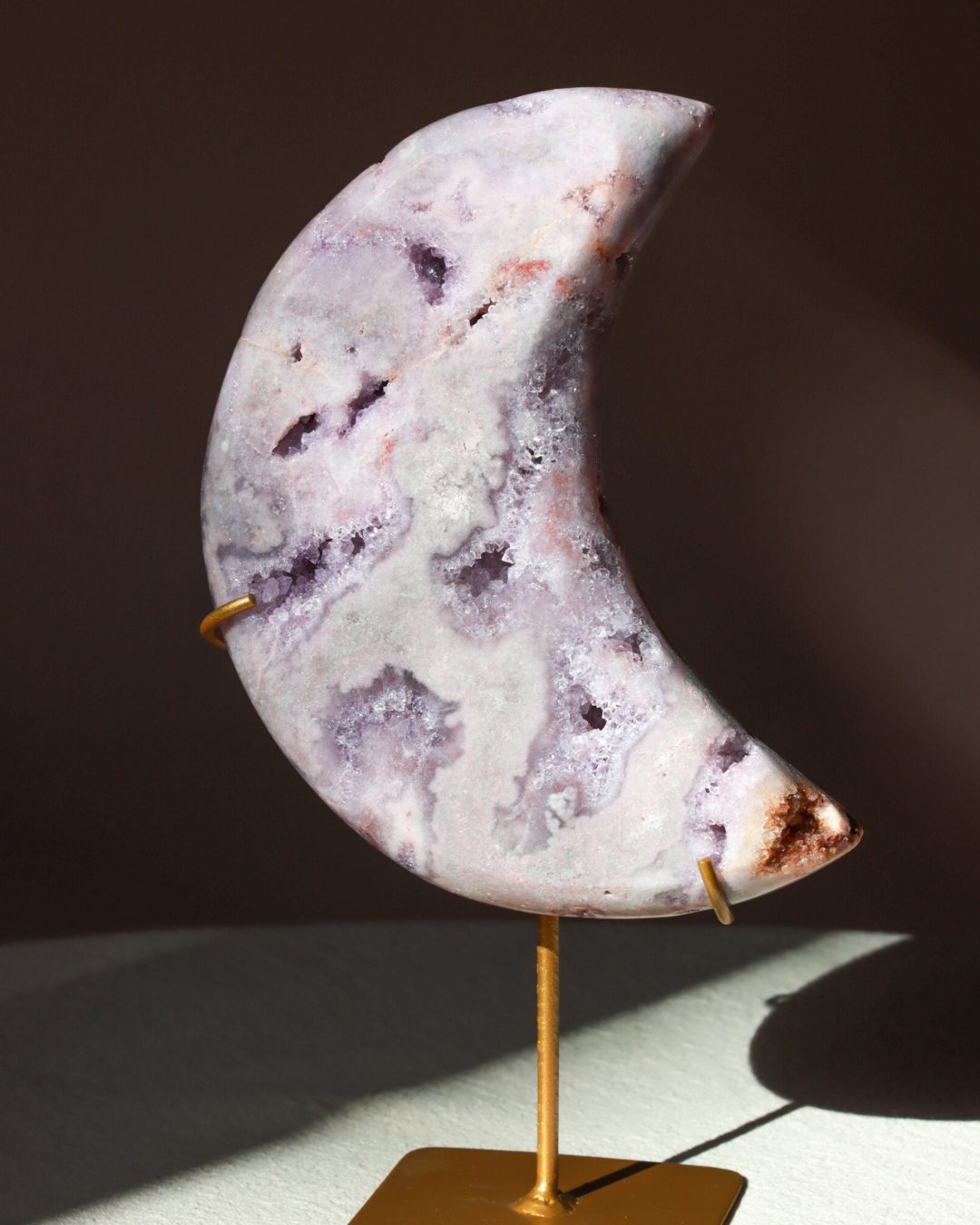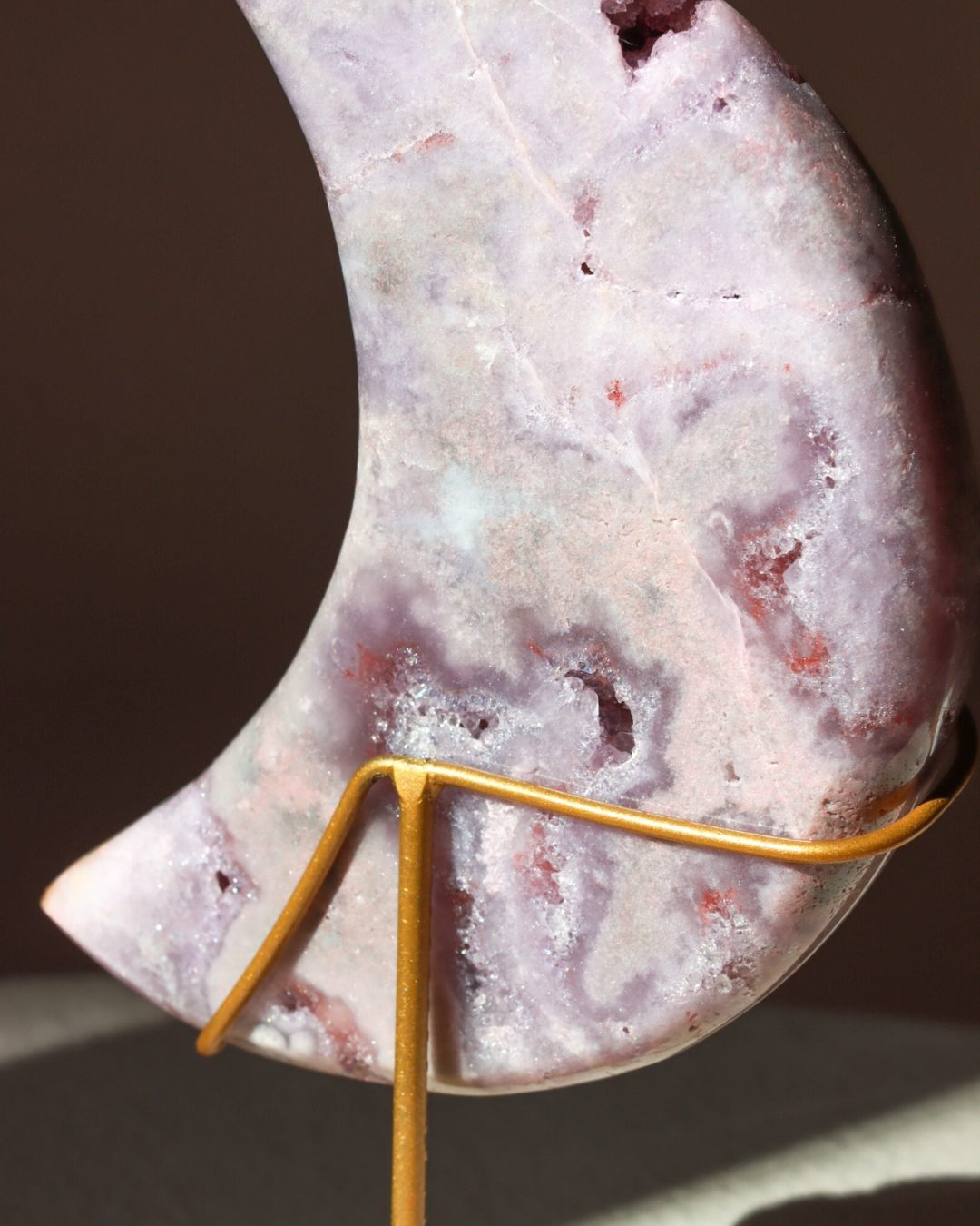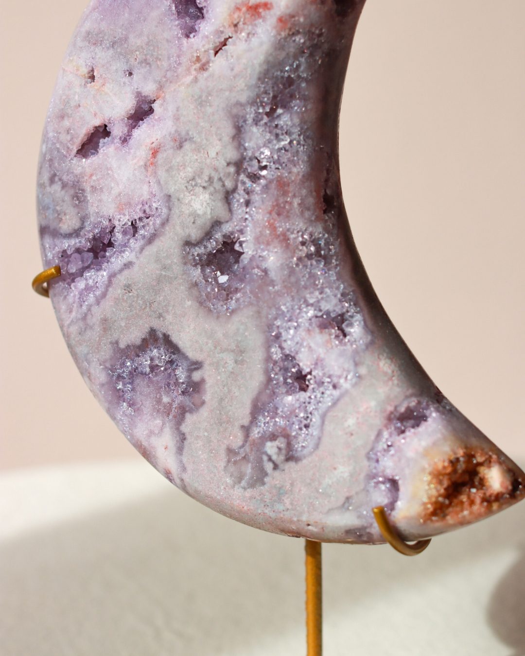Roze amethist is een zeldzame variant van amethist. Met haar zachte, poederroze tinten is het een van de meest geliefde edelstenen. De roze amethist is ontstaan in vulkanisch gesteente en dankt haar unieke kleur aan sporen van ijzer en andere mineralen. Roze amethist staat bekend om haar kalmerende werking en helpt bij het vinden van innerlijke rust, emotionele balans en zelfliefde.