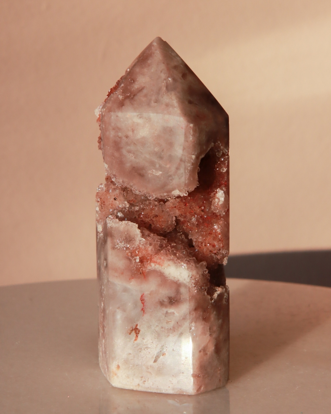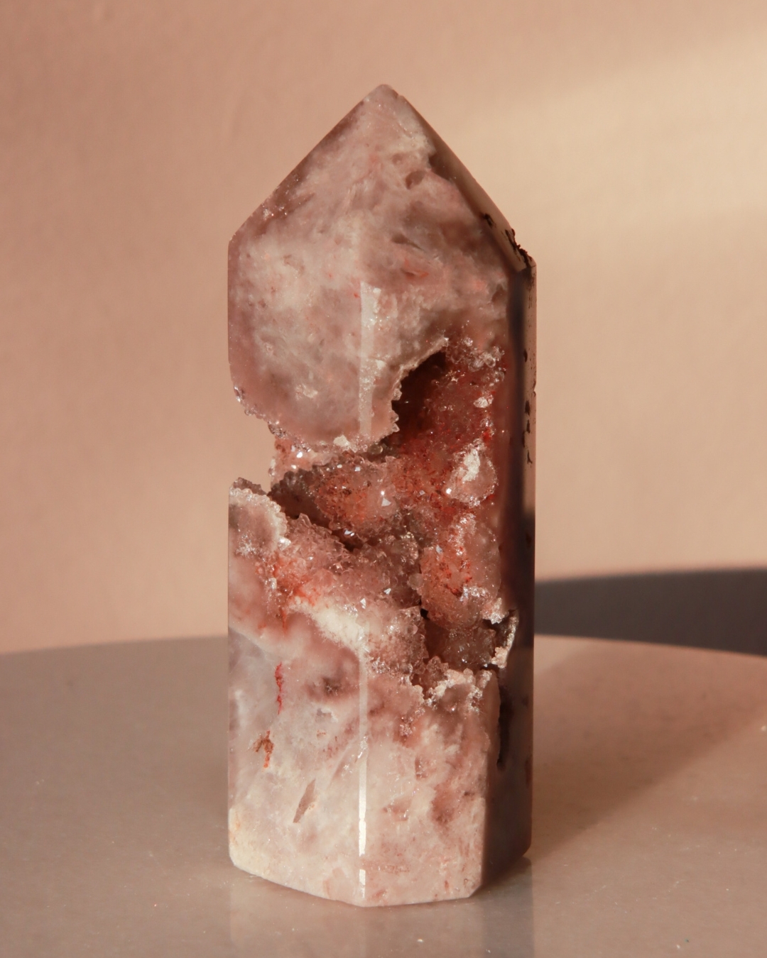 Zeer heldere rozenkwarts toren in zachtroze.