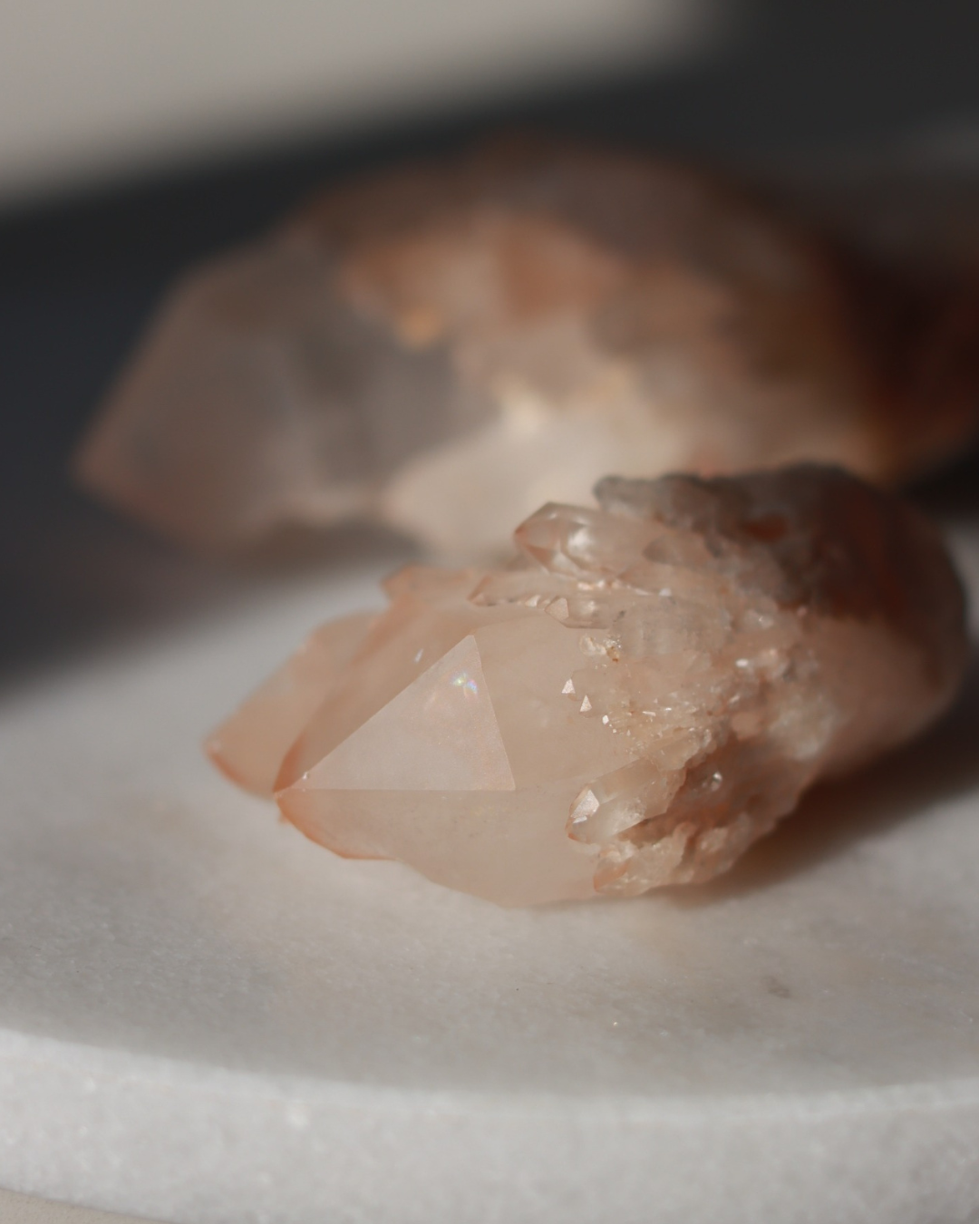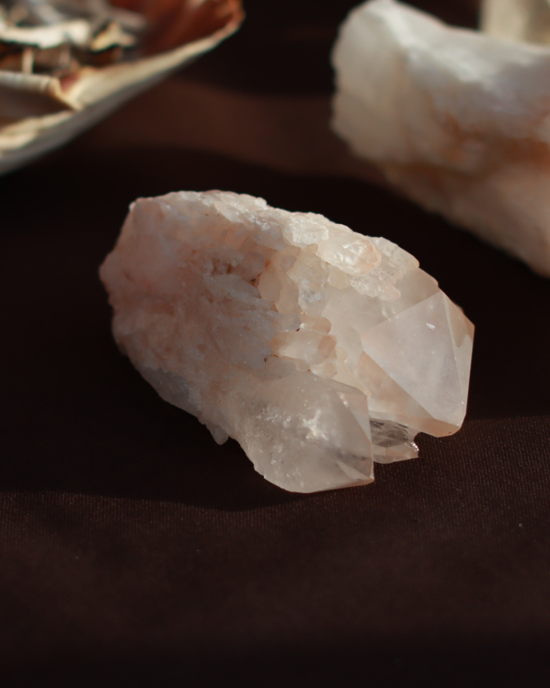 Pink pineapple quartz is een zeldzame en nieuwe vondst binnen de wereld van edelstenen en wordt ook wel kaarskwarts of ananaskwarts genoemd. Deze edelsteen valt direct op door haar zachteroze perzikkleur en duidelijke punten. Deze bijzondere kwartssoort wordt vooral gevonden in Madagaskar en Brazilië, waar de unieke combinatie van mineralen en natuurlijke omstandigheden zorgt voor haar karakteristieke tinten. Pink Pineapple Quartz is geliefd bij liefhebbers van zachte, vrouwelijke en licht speelse energie en werkt diep in op je gevoelsleven. Pink Pineapple Quartz staat ook bekend om haar zachte helende energie, die je helpt om dichter bij jezelf te komen, spanningen los te laten en vanuit een open hart te leven.