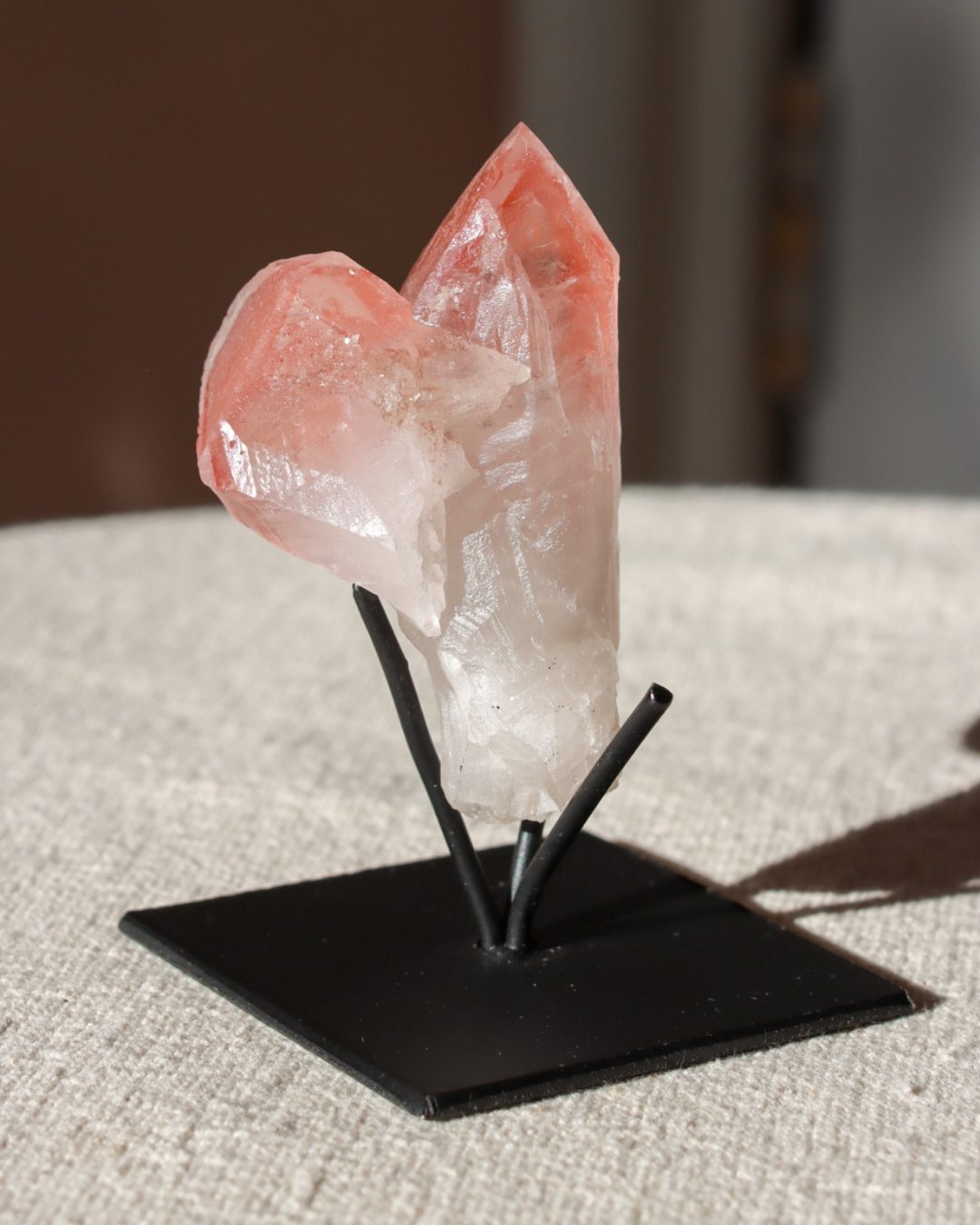 Scarlet lemurische kwarts of rode lemurische kwarts is een krachtige en zeldzame kristalsoort, afkomstig uit oude Lemurische vindplaatsen. Deze kristallen worden gekenmerkt door hun diepe, roodachtige tinten, veroorzaakt door natuurlijke ijzerinsluitingen (hematiet). Elke cluster is uniek gevormd en straalt een sterke, aardende energie uit. Scarlet Lemurisch kristal staat bekend om zijn intens transformerende werking en wordt vaak geassocieerd met spiritueel ontwaken, innerlijke kracht en het openen van het hartchakra.