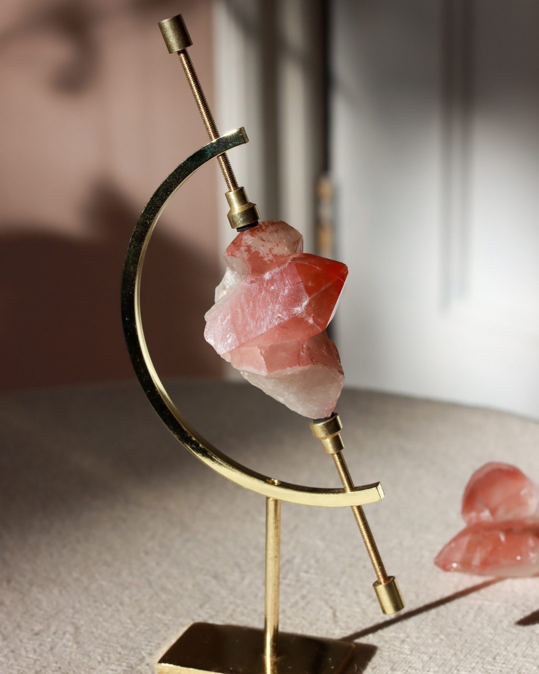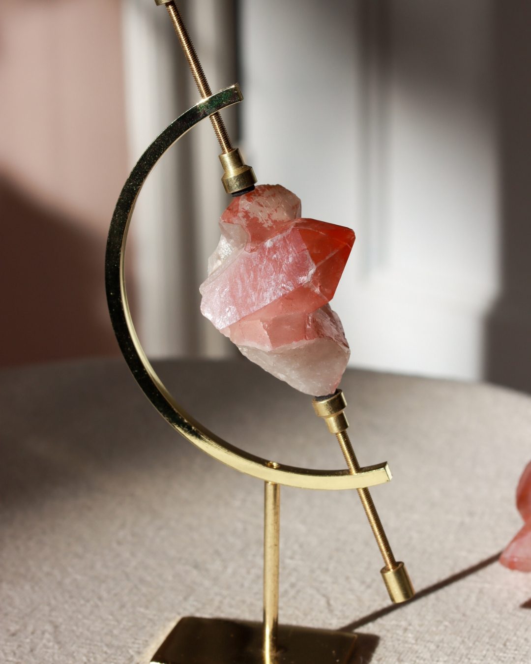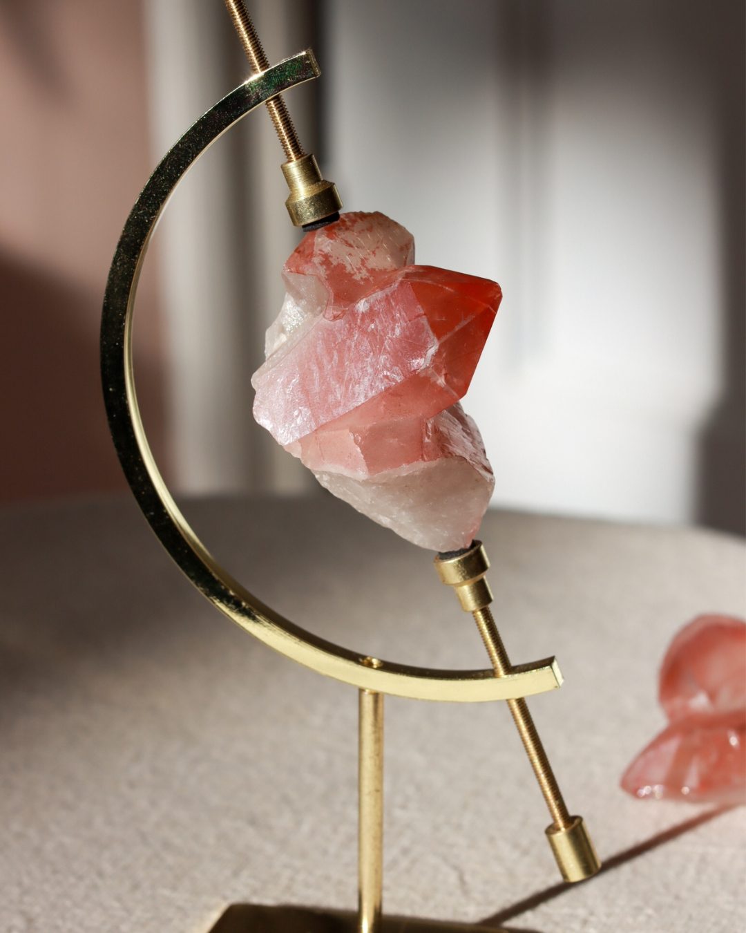 Scarlet lemurische kwarts of rode lemurische kwarts is een krachtige en zeldzame kristalsoort, afkomstig uit oude Lemurische vindplaatsen. Deze kristallen worden gekenmerkt door hun diepe, roodachtige tinten, veroorzaakt door natuurlijke ijzerinsluitingen (hematiet). Elke cluster is uniek gevormd en straalt een sterke, aardende energie uit. Scarlet Lemurisch kristal staat bekend om zijn intens transformerende werking en wordt vaak geassocieerd met spiritueel ontwaken, innerlijke kracht en het openen van het hartchakra.